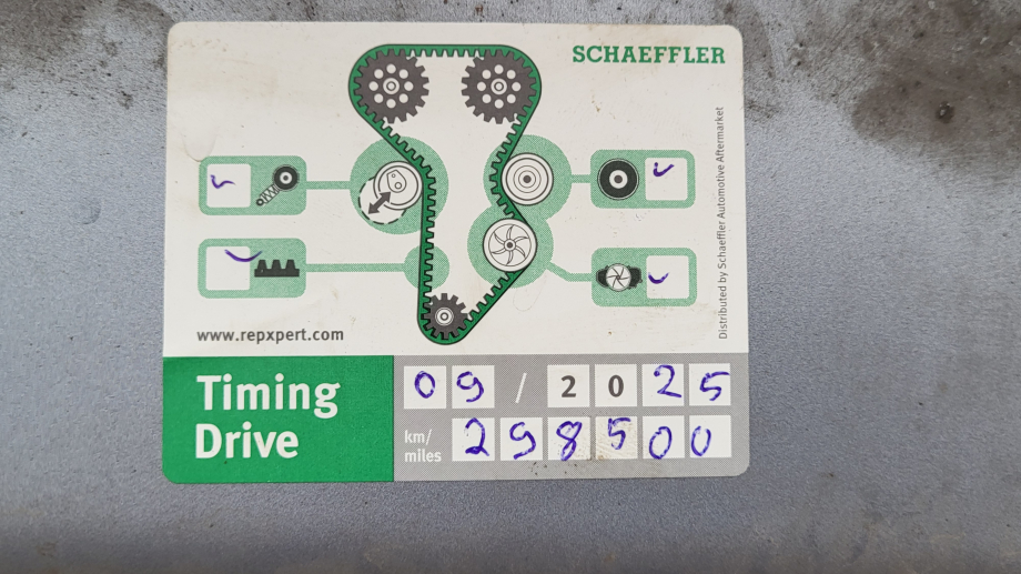 Tikko nomainīts zobsiksnas komplekts.